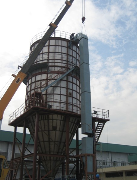 该套设备是专门为发酵液喷雾干燥而设计,要求产品具有生物活性。全套设备包括热风系统、喷雾干燥塔、袋式除尘器等,是我司到目前为止在国外现场施工的最大喷雾干燥机。